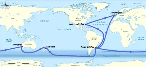 - ↑ "Maiden yacht world voyage halted after 36 hours". BBC News. 16 November 2018. Retrieved 16 November 2018.