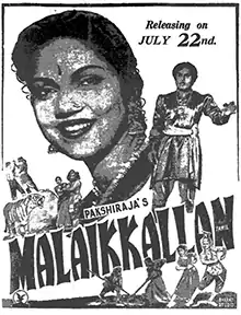 Malaikkallan (transl. Thief of The Hills) is a 1954 Indian Tamil-language action film starring P. Bhanumathi and M. G. Ramachandran. The film was released on 22 July 1954, and was an astounding success and highest collection of the year. It ran more than 140 days in Chennai and all other major cities.[1] It was the first Tamil film to win a President's Silver Medal.[2] It was the first Indian movie to be remade in five other languages.