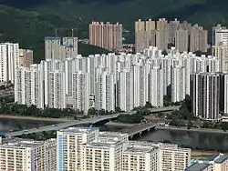 Festival City (名城) is the largest private housing estate in Tai Wai. It is a HK$20 billion residential-commercial development project by Cheung Kong and MTR Corporation. It is located above the Tai Wai (Station) Maintenance Centre, next to Tai Wai station, which is the interchange station between the East Rail line and the Tuen Ma line of the MTR metro system. The site was formerly occupied by a football court and public bicycle park. However the government needed to build the Ma On Shan Line Depot in 2000, forcing the demolition of all of the facilities.