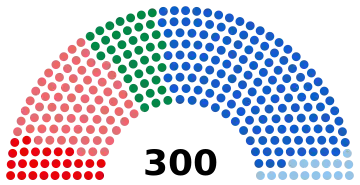 In January 2020, soon after returning to power, New Democracy, which has always been a proponent of majority bonuses since 1974, passed a new electoral law to reinstate the bonus, albeit under a different formula. The party list with the most votes would receive up to 50 extra seats, benefitting disproportionally under a new sliding scale: It gets at least 20 extra seats (assuming it receives at least 25% of the vote) plus another extra seat for every half percentage point between 25% and 40%, for a total of 50 extra seats when reaching at least 40% of the vote. Only the remaining seats (at least 250) are proportionally distributed among all parties above 3% (including the largest party itself).[19] This 2020 law would take effect starting from the next Greek election after the May 2023 election (which turned about to be just a month later in June 2023, as election winners New Democracy wanted the extra seats to gain an absolute majority of seats).[20]