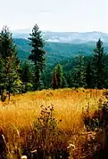 McCroskey State Park occupies the rocky slopes of Skyline Ridge on Mineral Mountain, in a transitional zone between the Palouse prairie to the west (and south) and the Rocky Mountains to the east.[6] The park's chief attraction is a narrow unimproved road called Skyline Drive, which winds for 18 miles (30 km) along a steep ridge, climbing through dense cedar forest that gives way to stands of ponderosa pine and, eventually, to prairie. The road also links a scattering of interpretive signs and vista points.[2]