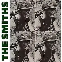 The album's sleeve uses a 1967 photograph of an American marine, Cpl. Michael Wynn, in Vietnam, though with the wording on his helmet changed from "Make War Not Love" to "Meat Is Murder". The original image was used for Emile de Antonio's 1968 Oscar-nominated documentary In the Year of the Pig.[22][23][24] Wynn stated in 2019 that he was never asked permission for the use of the photo, and that he "wasn’t real happy" that the wording on the helmet was changed.[25]