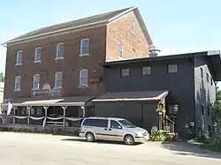 Meek's Flour Mill is a historic building located in Bonaparte, Iowa, United States. William Meek and Dr. R.N. Cresap laid out the town of Meek's Mill in 1837. Although the town was renamed Bonaparte in 1841, the Meek family had a central role in its development through the turn of the 20th-century.[2] The present building is a three-story, gable roofed, rectangular structure that was built on a raised basement of ashlar limestone blocks. It was constructed in 1878 by William's son Robert, who had succeeded his father in running the family businesses. He was assisted by his brothers Isaiah and Joseph. It replaced the original 1844 mill, which had been destroyed in a fire. While built on the same site, it is unknown if any part of the present structure was a part of the original mill.[2] Two other structures belonging to the Meek's family are located nearby: a woolen mill (1853), and a saw mill (1860).
