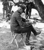 General John J. Pershing in his camp at Colonia Dublán, studying telegraphed orders