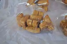 The most variety comes in sweet breads because of the wide variety of flavorings and fillings. Vanilla and cinnamon are important ingredients in many of the sweet breads. Other important flavorings include almonds, coconut, sesame, peanuts, walnuts, chocolate, tequila, rum, orange peel, strawberry preserves, quince jelly, apricot preserves, apple and pineapple. In some breads, which need to puff greatly, finely ground tequesquite (saltpeter or potassium/sodium nitrate) is used. The use of this ingredient has been documented since the 1700s.[2] Most sweet breads are baked but some are fried, usually using beef or pork fat, sometimes butter. The most popular of these are churros and buñuelos.[2][9]