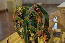 Patzcuaro is noted for is deep trays and small boxes,[12] but its designs have not changed much since the 18th century, when the craft was at its peak here and several artisans noted in contemporary records. One of these families, De la Cerda, continues to make lacquerware in the city.[13][14] These traditional patterns include elements of Oriental origin, along with indigenous and European designs.[15]