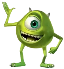 Michael "Mike" Wazowski is a fictional character who appears in Disney/Pixar's Monsters Inc. franchise. He is a green one-eyed round monster with two arms, legs, and small horns. In the films, Mike is one of the two protagonists, alongside James P. Sullivan, and is primarily voiced by Billy Crystal in the film series, shorts, and the Disney+ series.[1]