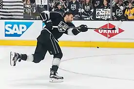 On June 26, 2015, Lucic was traded to the Los Angeles Kings in exchange for goaltender Martin Jones, Colin Miller and a first-round pick in the 2015 NHL Entry Draft.[57] Lucic excelled during his season with the Kings, playing a strong two-way game while recording 20 goals, 35 assists for 55 points during the regular season. Lucic also added three assists in five games in the 2016 playoffs.