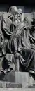 An angel (personification of the Orthodox Church) supporting the cross and blessing a kneeling woman in Russian national costume, leaning on a shield with the coat of arms and the date "1862". The figures are made by Ivan Schroeder, the cross was made according to the drawing by Viktor Hartmann. This group is installed at the top of the orb (symbol of the monarch's power), covered with a cross pattern. The orb is surrounded by an inscription: "To the Millennium of the Russian state, which happened in the prosperous reign of Emperor Alexander II, year 1862"