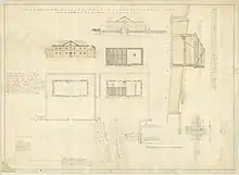 In common with the settlement's other new buildings, the Commissariat Store followed a simple design suitable for everyday use in a penal colony and was well constructed from local materials.[1] The design was by William John Dumaresq (Acting Civil Engineer for New South Wales) whose plans arrived from Sydney in April 1828.[6][7] Dumaresq was also responsible for the design of the store at Dunwich completed in 1828.[8][1]