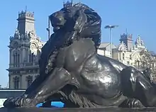 Seated against the buttresses are four figures that represent four realms of Spain: the Principality of Catalonia, and the kingdoms of León, Aragon, and Castile.