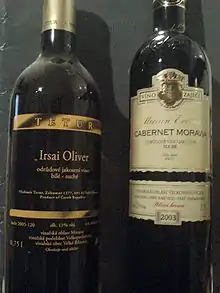 Wine in the Czech Republic is produced mainly in southern Moravia, although a few vineyards are located in Bohemia. However, Moravia accounts for around 96%[1] of the country's vineyards, which is why Czech wine is more often referred to as Moravian wine. Production centers on local grape varieties, but there has been an increase in the production of established international strains such as Cabernet Sauvignon.