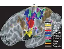 {{cite journal}}: CS1 maint: multiple names: authors list (link) - ↑ Graziano, M.S.A. and Aflalo, T.N. (2007). "Mapping behavioral repertoire onto the cortex". Neuron. 56 (2): 239–251. doi:10.1016/j.neuron.2007.09.013. PMID 17964243.