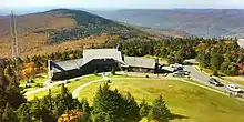Mount Greylock in northwest Massachusetts is the highest point in the state at 3,489 feet (1,063 meters). The peak played a role in early American literature,[9][10][11] and is part of the Taconic Mountains, which are geologically distinct from the nearby Berkshires and Green Mountains. Expansive views and a small area of sub-alpine forest characterize its upper reaches. A seasonal automobile road crosses the summit area near three structures from the 1930s which together constitute a small, "National Historic District." Various hiking paths including the Appalachian Trail traverse the area, which is part of the larger Mount Greylock State Reservation.[12]