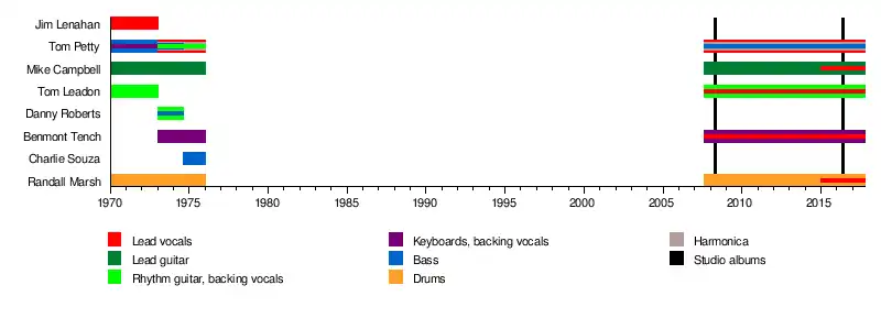 - Tom Petty – bass (1971–1974, 2007–2017; his death), backing vocals (1971–1973, 2007–2017), lead vocals, harmonica (1971–1975, 2007–2017), rhythm guitar (1973–1975), keyboards (1971–1973)