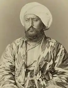 Sayid Muhammad Khudayar Khan, usually abbreviated to Khudayar Khan, was a Khan of Kokand who reigned between 1845 and 1875 with interruptions. He was the son of Shir Ali Khan.[1] During the reign of Khudayar Khan, the Khanate was suffering from a civil war and from interventions of the Emir of Bukhara. Subsequently, the Russian invasion into Central Asia first forced the Khanate to become a vassal of the Russian Empire, and in 1876 the Khanate was abolished as a result of the suppression of an uprising. In 1875, Khudayar Khan, who took a pro-Russian position, during the uprising had to flee to Orenburg in Russia. He died in exile.[1]