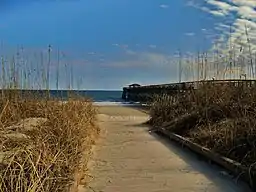 Surf fishing is allowed; however, it is not allowed on the beach where lifeguards are on duty and a South Carolina saltwater fishing license is required.[3] Typical fish caught include flounder, king mackerel, sheepshead, whiting, spot, spanish mackerel, drum and blues.