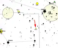 NGC 1662 (also known as Collinder 55) is a loosely bound open cluster located in the constellation Orion. It has an apparent magnitude of 7.6[1] and an approximate size of 20 arc-minutes.