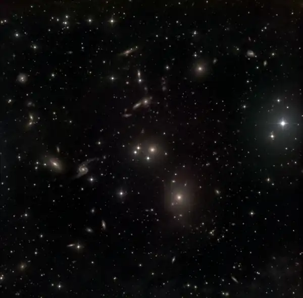 NGC 80 is a lenticular galaxy located in the constellation Andromeda. It is interacting with NGC 47 and NGC 68, and is the brightest cluster galaxy of the NGC 80 group, a galaxy group named after it.[3]