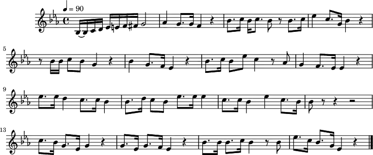 B,/-B,/C/D/ E/=E/F/^F/ G4 | A2 G>G F2 z2 | B>c B<c B z B>c | e2 c>G B2 z2 | z B/B/ cB G2 z2 | %5