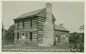 The family lived on land along Pottinger's Creek, in a settlement called Rolling Fork in Nelson County, Kentucky, until patriarch Joseph's death in 1793. Nancy's grandmother, who was called by the more formal name Ann rather than the common nickname of Nancy, decided to return to her homeland, Farnham parish in Virginia. At that time, Nancy went to live with her mother, now Lucy Hanks Sparrow,[14] having married Henry Sparrow in Harrodsburg, Kentucky two or three years earlier.[11][15][16][17][18][19][20]