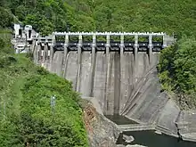 The Narude Dam is a gravity dam on the Shō River about 22 km (14 mi) south of Nanto on the border of Toyama and Gifu Prefectures, Japan. It was constructed between 1950 and 1952. The dam has an associated 97 MW hydroelectric power station which was built in two parts. The first part of the power station (37 MW) was commissioned in 1951 and the second part of the power station (60 MW) was commissioned in 1975. Of the nine dams on the Shō River it is the sixth furthest downstream.[1]