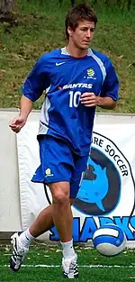 He made his debut for the Socceroos with a brief appearance in the 3–0 win over Singapore on 30 June 2007.[15]