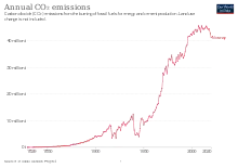 The externalities engendered from Norway's activities on the environment, pose another concern apart from its domestic economic implications. Most of Norwegian gas is exported to European countries. As of 2020, about 20% of natural gas consumed in Europe comes from Norway, and Norwegian oil supplies 2% of the global consumption of oil.[6] Considering that three million barrels of oil adds 1.3 Mt of CO2 per day to the atmosphere as it is consumed, 474 Mt/year, the global CO2 impact of Norway's natural resource supply is significant.[9] Despite that, Norway exports eight times the amount of energy consumed domestically, most of Norway's carbon emissions are from its oil and gas industry (30%) and road traffic (23%).[7][8][10] To address the problem of CO2 emissions, the Norwegian government has adopted different measures, including signing multilateral and bilateral treaties to cut its emissions in lieu of rising global environmental concerns.[10][8]
