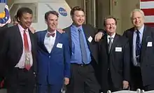 2010 Space Conference group portrait (from left): Tyson, Bill Nye, Jim Bell, Scott Hubbard, and Lou Friedman