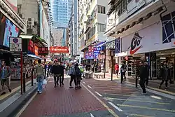 Nelson Street (Chinese: 奶路臣街) is a street in Mong Kok, Kowloon, Hong Kong, China. The street is 240 metres in length and runs in the east–west direction. It can be accessed from exits E1 and E2 of the Mong Kok station.[1] The section between Portland and Sai Yeung Choi South Street is closed to vehicular traffic.