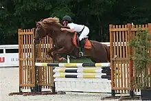 The ponies can carry adults and in many cases compete on equal terms with larger equines while doing so. For example, in 2010, the New Forest Pony Enthusiasts Club (NFPEC), a registered riding club whose members compete only on purebred registered New Forest ponies, won the Quadrille competition at the London International Horse Show at Olympia.[34] This was a significant win, as the British Riding Clubs Quadrille is a national competition, with only four teams from the whole of Britain selected to compete at the National Final.[35][36]