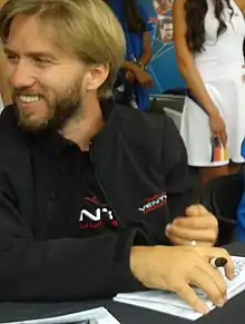 On 26 June 2014, Heidfeld signed up for the inaugural season of Formula E for Venturi Grand Prix.[28] In the first race at the 2014 Beijing ePrix, he had a spectacular accident at the final corner on the final lap with e.Dams Renault driver Nicolas Prost whilst fighting for the lead. Prost later accepted the blame for the accident.[29] At the 2014 Putrajaya ePrix, he retired from the race after a collision this time with Franck Montagny but to add insult to injury, he was excluded from the 19th position finish for changing his car outside the permitted area during his pit stop, meaning he cannot count the race as a round where he drops a score.[30]