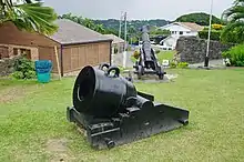The former Dutch town of Lampsinsstad was renamed Scarborough in 1765, and was designated the capital of Tobago in 1779.[10] To defend Scarborough, the British built Fort King George on a hill overlooking the town.[11] The population of British settlers and enslaved Africans grew quickly, and production of sugar, cotton and cocoa grew significantly. A colonial constitution was granted and an elected House of Assembly was created, with each parish having one elected member. The government was under the control of the Governor-in-Chief of the Windward Islands, who was based in Grenada.[12]: 1–9