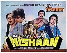 Nishaan (transl. Identification Mark) is a 1983 Indian Hindi-language action film, produced by B.S. Shaad under the BRAR Productions banner and directed by Surendra Mohan. It stars Jeetendra, Rajesh Khanna, Rekha, Poonam Dhillon in lead roles and has music composed by Rajesh Roshan.