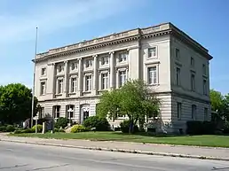 The building was constructed in 1909-1910 of limestone from a Bedford, Indiana quarry,[4] using a design by James Knox Taylor, then Supervising Architect of the U.S. Treasury.[3] It served for decades as a post office and a courthouse of the United States District Court for the Western District of Michigan, with the court meeting there from 1912 until 1941.