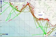 OpenSeaMap measures water depths by Crowdsourcing. Sailors, motor boaters, commercial shipping, divers, fishermen collect water depths between 0 and 100 m with sounder and GPS. Divers work with a dive computer. Coastal water, lakes and rivers are surveyed. Result will be an elevation model and derived depth lines.[1][6] Uploaded tracks are shown in the chart.[7] There is a discussion how crowdsourcing can support and enrich the systematic official measuring.