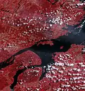 The Oslofjord (Norwegian: Oslofjorden, Urban East Norwegian: [ˈʊ̂ʂlʊˌfjuːɳ]; English: Oslo Fjord[1][2][3]) is an inlet in southeastern Norway. The 120-kilometre (75 mi) fjord begins at the small village of Bonn in Frogn Municipality and stretching northwards to the city of Oslo, and then curving to the west and then south again. It then flows south to an imaginary line running between the Torbjørnskjær Lighthouse and Færder Lighthouse where it becomes part of the Skagerrak strait. The Skagerrak connects the North Sea and the Kattegat sea area, which leads to the Baltic Sea. The Oslofjord is not a fjord in the geological sense, but in the Norwegian language, the term fjord can refer to a wide range of waterways including inlets such as this one.[4]