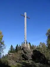 Ostlandkreuz (German for "Eastern Lands Cross") or Kreuz des deutschen Ostens ("Cross of the German East") is the name of memorial crosses in Germany remembering the large-scale Ethnic cleansing of Central and Eastern Europe of its German-speaking population. After border shifts and population transfers agreed at the Potsdam Conference, German-speakers were expelled from the former Sudetenland areas of Czechoslovakia, from the Former eastern territories of Germany annexed by Poland and the Soviet part of the former Province of East Prussia. While most of these crosses stand in cemeteries, some are erected as landmarks on mountains.