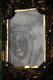 Our Lady of Absam is a Catholic title of Mary, mother of Jesus, associated with a 1797 Marian apparition in the alpine village of Absam, a municipality of Austria. Unlike traditional Marian apparitions, this apparition of the Virgin Mary was said to leave a permanent memento in the form an image of the Virgin etched into a windowpane without a formal appearance by the Virgin. The windowpane itself has been associated with numerous miracles and healings.[1]