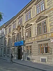 In 1627 the Palais passed to Count Wratislav zu Fürstenberg, in 1643 to Jörger von Tollet family, in 1660 to Count Johann Karl von Porcia.[5] The building survived the fire of 1683 that destroyed the buildings of the nearby Freyung[1] and is still named after the Porcias although the family disposed with the building in the 1720s.[5] It became the property of statesman Bartholomäus von Tinti, who also owned the Schallaburg castle. In the 1750s it was purchased by the Court of Maria Theresa of Austria and remains a state property to date (2010). In 1883 the interiors were completely rebuilt, and the Palais became a courthouse.