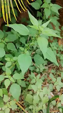 Parietaria praetermissa is an annual, trailing herb up to 55 cm (22 inches) tall. Leaves are ovate or lancolate, up to 6.5 cm (2.6 inches) long.[3][4][5]