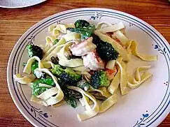 Pasta primavera ("spring Pasta" in Italian) is an American dish that consists of pasta in a cream sauce and fresh vegetables, invented in the 1970s.[2][3]