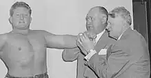 In 1930, Bowser created the American Wrestling Association and also recruited amateur wrestling standout Ed Don George, who was immediately put in main events and, on December 10, 1930, defeated Sonnenberg for the world title in Los Angeles. Lewis, who felt he had been promised that he would be the one to get the title back from Sonnenberg, defeated George for the belt on April 13, 1931, in Los Angeles, against Bowser's wishes.[1] But Bowser quickly regained control of the title when on May 4, 1931, in Montreal, Lewis was disqualified for biting his opponent, Henri DeGlane, who was declared the new champion. The suspicion at the time was that the bite marks were actually inflicted by DeGlane himself or one of his cornermen, and that he pretended to have been bitten by Lewis to win the match, although it was never confirmed.[1]