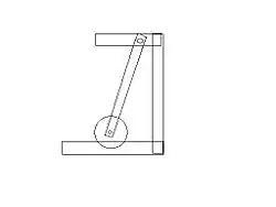 Pendulum saw or swing saw, side view, a circular saw hung from a swinging arm, for cross cutting wood. Shown in the cutting position