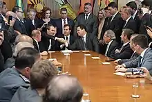 The reform bill was entered into the Chamber of Deputies on 20 February 2019.[18] It was passed by the Chamber on 11 July 2019 in a 379–131 vote, with the support of the centre-right majority and some dissidents from the centre-left (SDD, Cidadania and some PSB dissidents), while it was strongly opposed by the majority of centre-left parties (PT, PSB, PDT, PSOL and PCdoB).[19]
