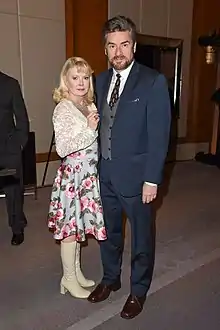 ![]() Keleghan with his wife Leah Pinsent in 2017 | |