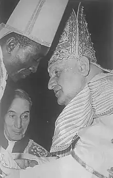 Porekuu was in a wheelchair and was lifted onto the dais to allow Pope Benedict to give him his ring.[13]