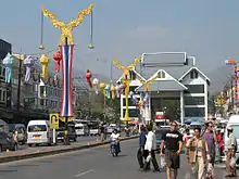 In Bangkok, Phahonyothin Road originates in Ratchathewi district and crosses Phaya Thai, Chatuchak, Bang Khen, Don Mueang, and Sai Mai districts before continuing into Pathum Thani Province, and on through Ayutthaya, Saraburi, Lopburi, Nakhon Sawan, Chainat, again through Nakhon Sawan, Kamphaeng Phet, Tak, Lampang, Phayao and finally Chiang Rai, ending in Mae Sai district, where it connects to Tachileik in Myanmar.