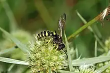 The subfamily Philanthinae is one of the largest groups in the wasp family Crabronidae, with about 1100 species in 9 genera, most of them in Cerceris; Alexander treats it as having only 8 genera.[1][2] Historically, this subfamily has frequently been accorded family status. The subfamily consists of solitary, predatory wasps, each genus having its own distinct and consistent prey preferences. The adult females dig tunnels in the ground for nesting.