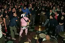 The band's live shows (the first of which was at O'Brien's in Allston, Massachusetts) was a chaotic and frenetic performance from both members. The San Francisco Bay Guardian described their live sound as "Korean folk drumming gone punk". Both members would appear onstage in outlandish outfits that corresponded with their colorful pseudonyms.